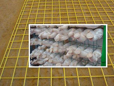 尤其是江苏省应用为普遍,是一种对比志向的温室蘑菇生长床。网片布局多数采用四边双丝,中间加丝,构成“田”字格形状。